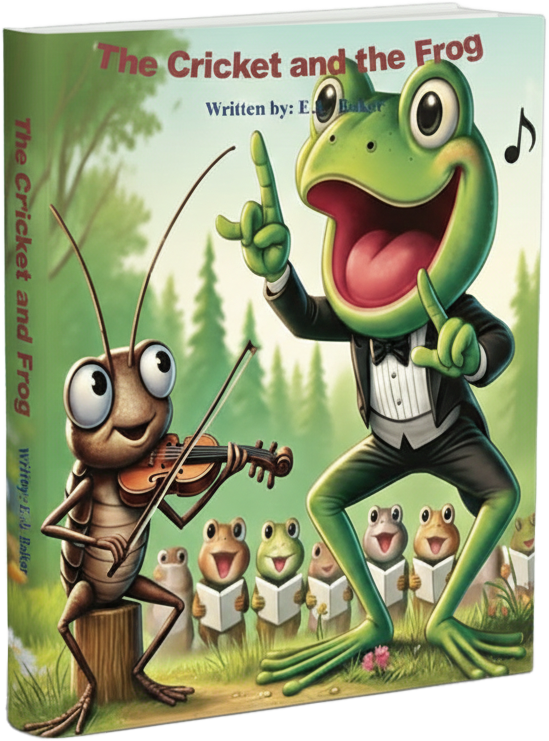 “In the heart of the forest, a lively frog with a deep, croaky voice and a nimble cricket with a sweet, high chirp dream of creating the most enchanting choir the woods have ever heard. Together, they gather the sounds of rustling leaves, babbling brooks, and the songs of their fellow woodland friends to weave a melody that fills the night air with magic. But their harmony is threatened when Willie-a sly, troublesome creature-sets his sights on disrupting their project. To protect their dream, the frog and the cricket must join forces, blending their talents, courage, and friendship to outwit Willie and keep the music of the forest alive.”